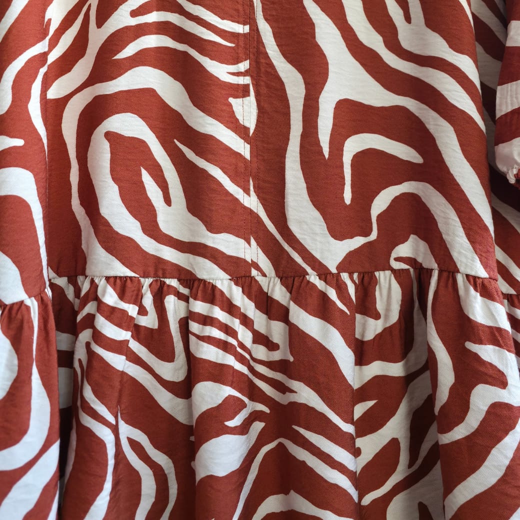 Rochie scurtă casual cu imprimeu zebră, decolteu în V, volănașe în partea de jos, mâneci lungi cu elastic, material lejer de primăvară-vară. Disponibilă atât în magazin cât și pe site cu livrare rapidă în toată România.